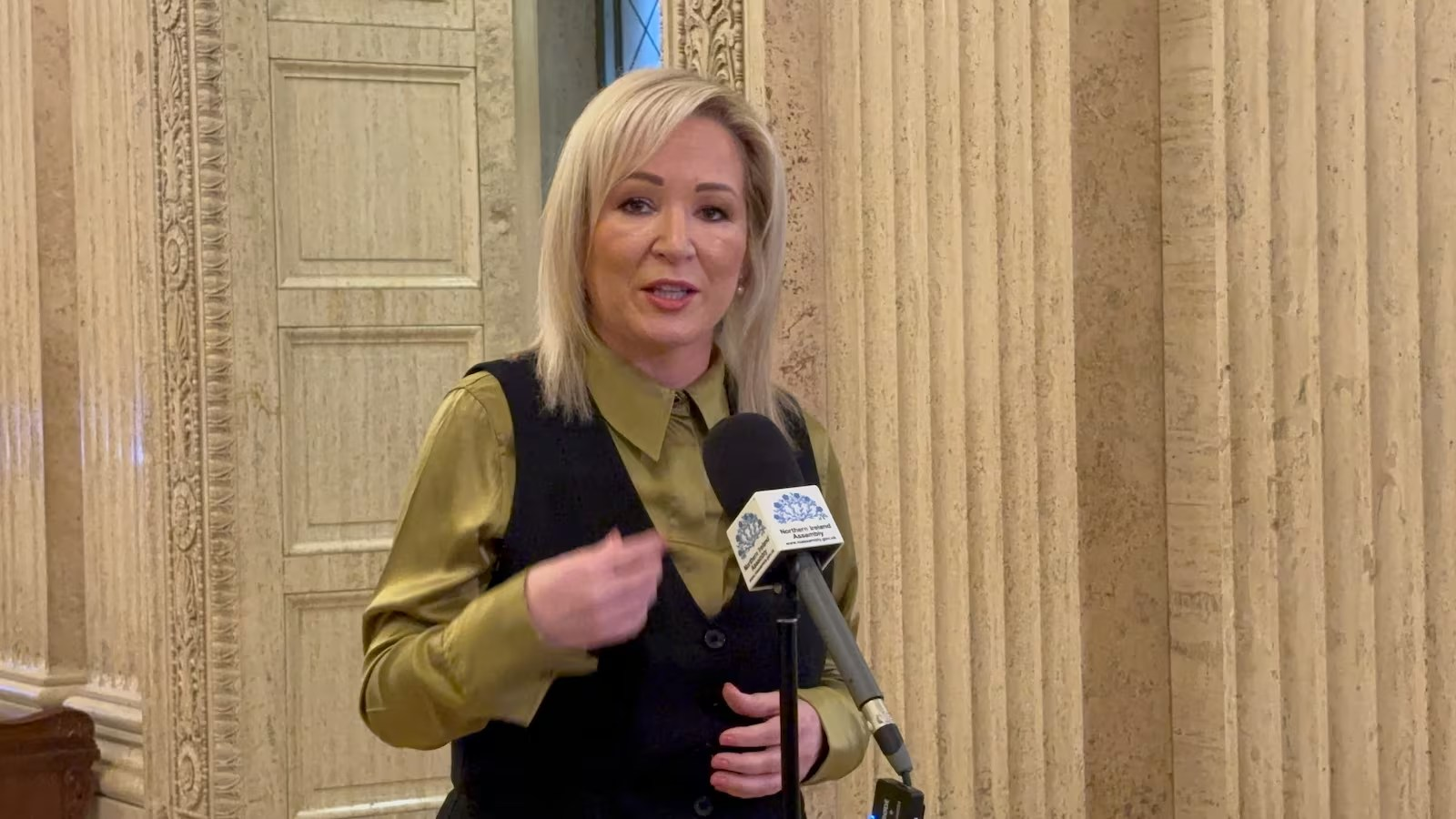 Northern Ireland’s First Minister Michelle O’Neill speaks on work to end violence against women