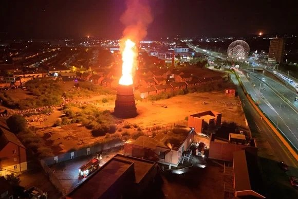 of shots. As British Army helicopters hovered overhead, the crowd cheered at
